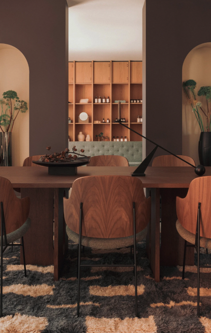 영구적이지 않은 것이 주는 온화함. 안거리 공간은 따뜻한 무게감을 주는 문을 열고 들어서는 순간, 자연을 닮은 향과 잔잔한 소리가 온 감각을 깨워줍니다. 다소 여백이 많은 이 공간에 넓은 창으로 쏟아지는 빛을 마주하면, 잠시 시간은 아득해집니다. 낮은 자연과 눈높이를 같이 할 수 있는 이곳에서, 직접 갈고 우려낸 원두의 짙은 향을 음미하며 고요한 평화를 느껴보세요.